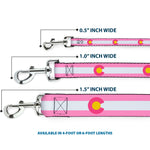 Dog Leash - Colorado Flags5 Repeat Light Pink/White/Pink/Yellow