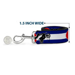 This fashion-forward dog leash is a great way to show off your favorite characters or brands. The durable components and beautiful printing ensure that the colors will continue to pop for years to come! It is made of high-density polyester and steel hardware. The leash is available in 0.5, 1.0 and 1.5 inches wide, and 4 and 6 feet in length. This product is Made in the USA by Buckle-Down Inc. and officially licensed by Buckle-Down.