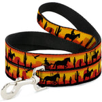 Dog Leash - Cowboy Silhouette/Western Landscape Reds/Black