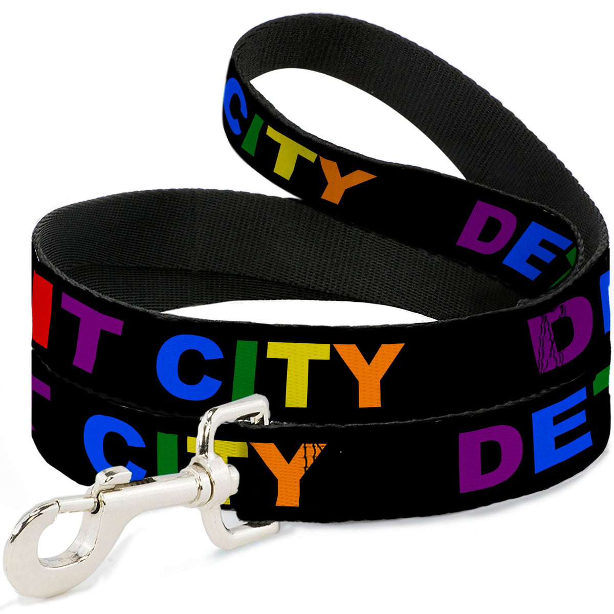 Dog Leash - DETROIT CITY Text Black/Rainbow