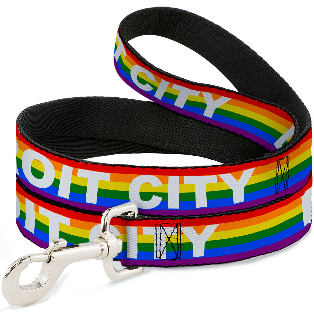 Dog Leash - DETROIT CITY Text Pride Flag Rainbow/White