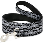 Dog Leash - Diamond Sugar Skull Stacked Black Silver Fade White