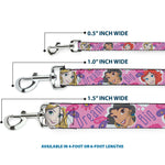 Dog Leash - Disney DREAM BIG PRINCESS Faces Pinks/Purples