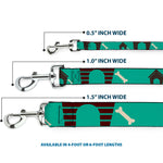 Dog Leash - Dog House & Bone Turquoise/Brown