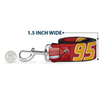 This fashion-forward dog leash is a great way to show off your favorite characters or brands. The durable components and beautiful printing ensure that the colors will continue to pop for years to come! It is made of high-density polyester and steel hardware. The leash is available in 0.5, 1.0 and 1.5 inches wide, and 4 and 6 feet in length. This product is Made in the USA by Buckle-Down Inc. and officially licensed by Disney.