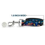 This fashion-forward dog leash is a great way to show off your favorite characters or brands. The durable components and beautiful printing ensure that the colors will continue to pop for years to come! It is made of high-density polyester and steel hardware. The leash is available in 0.5, 1.0 and 1.5 inches wide, and 4 and 6 feet in length. This product is Made in the USA by Buckle-Down Inc. and officially licensed by Disney.