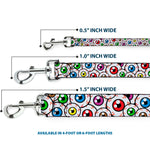 This fashion-forward dog leash is a great way to show off your favorite characters or brands. The durable components and beautiful printing ensure that the colors will continue to pop for years to come! It is made of high-density polyester and steel hardware. The leash is available in 0.5, 1.0 and 1.5 inches wide, and 4 and 6 feet in length. This product is Made in the USA by Buckle-Down Inc. and officially licensed by Buckle-Down.