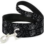 Dog Leash - Fleur-de-Lis Outline w/Filigree Black/Gray