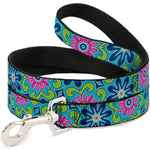 Dog Leash - Floral Burst Turquoise/Blues/Pinks/Yellow/Green
