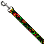 Dog Leash - Floral Collage2 Black/Red/Orange/Green