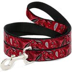 Dog Leash - Floral Paisley3 Red/Black/Gray/White