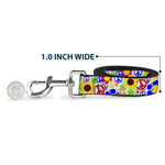 This fashion-forward dog leash is a great way to show off your favorite characters or brands. The durable components and beautiful printing ensure that the colors will continue to pop for years to come! It is made of high-density polyester and steel hardware. The leash is available in 0.5, 1.0 and 1.5 inches wide, and 4 and 6 feet in length. This product is Made in the USA by Buckle-Down Inc. and officially licensed by Buckle-Down.
