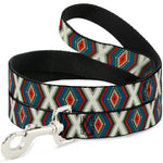 Dog Leash - Geometric Diamonds Grays/Red/Turquoise