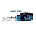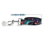 This fashion-forward dog leash is a great way to show off your favorite characters or brands. The durable components and beautiful printing ensure that the colors will continue to pop for years to come! It is made of high-density polyester and steel hardware. The leash is available in 0.5, 1.0 and 1.5 inches wide, and 4 and 6 feet in length. This product is Made in the USA by Buckle-Down Inc. and officially licensed by Disney.