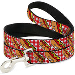 Dog Leash - Hot Dogs Buffalo Plaid White/Red