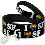Dog Leash - I "HEART BRIDGE" SF Black/White/Rainbow
