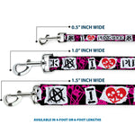Dog Leash - I Heart Punk Rock w/Safety Pins Black/Fuchsia/White