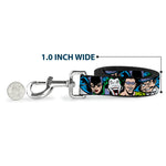 This fashion-forward dog leash is a great way to show off your favorite characters or brands. The durable components and beautiful printing ensure that the colors will continue to pop for years to come! It is made of high-density polyester and steel hardware. The leash is available in 0.5, 1.0 and 1.5 inches wide, and 4 and 6 feet in length. This product is Made in the USA by Buckle-Down Inc. and officially licensed by DC Comics.
