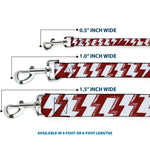 This fashion-forward dog leash is a great way to show off your favorite characters or brands. The durable components and beautiful printing ensure that the colors will continue to pop for years to come! It is made of high-density polyester and steel hardware. The leash is available in 0.5, 1.0 and 1.5 inches wide, and 4 and 6 feet in length. This product is Made in the USA by Buckle-Down Inc. and officially licensed by Buckle-Down.