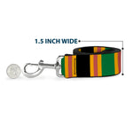 This fashion-forward dog leash is a great way to show off your favorite characters or brands. The durable components and beautiful printing ensure that the colors will continue to pop for years to come! It is made of high-density polyester and steel hardware. The leash is available in 0.5, 1.0 and 1.5 inches wide, and 4 and 6 feet in length. This product is Made in the USA by Buckle-Down Inc. and officially licensed by Buckle-Down.