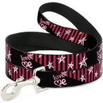 Dog Leash - Love Me w/Sketch Stars & Stripes Black/Fuchsia/White
