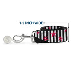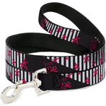 Dog Leash - Love Me w/Sketch Stars & Stripes Black/White/Fuchsia