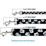 Dog Leash - Mickey Mouse Expressions Scattered Black/White