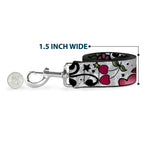 This fashion-forward dog leash is a great way to show off your favorite characters or brands. The durable components and beautiful printing ensure that the colors will continue to pop for years to come! It is made of high-density polyester and steel hardware. The leash is available in 0.5, 1.0 and 1.5 inches wide, and 4 and 6 feet in length. This product is Made in the USA by Buckle-Down Inc. and officially licensed by Buckle-Down.