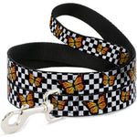 Dog Leash - Monarch Butterfly Scattered Checker Black/White