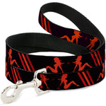 Dog Leash - Mud Flap Girls w/Stripes Black/Red/Orange