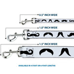 Dog Leash - Mustaches Straight White/Black