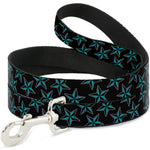 Dog Leash - Nautical Stars Scattered Black/Turquoise