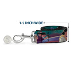 This fashion-forward dog leash is a great way to show off your favorite characters or brands. The durable components and beautiful printing ensure that the colors will continue to pop for years to come! It is made of high-density polyester and steel hardware. The leash is available in 0.5, 1.0 and 1.5 inches wide, and 4 and 6 feet in length. This product is Made in the USA by Buckle-Down Inc. and officially licensed by Disney.