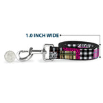 This fashion-forward dog leash is a great way to show off your favorite characters or brands. The durable components and beautiful printing ensure that the colors will continue to pop for years to come! It is made of high-density polyester and steel hardware. The leash is available in 0.5, 1.0 and 1.5 inches wide, and 4 and 6 feet in length. This product is Made in the USA by Buckle-Down Inc. and officially licensed by Buckle-Down.