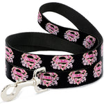 Dog Leash - Super Shield Hibiscus Design Black/Pink