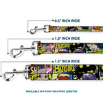 This fashion-forward dog leash is a great way to show off your favorite characters or brands. The durable components and beautiful printing ensure that the colors will continue to pop for years to come! It is made of high-density polyester and steel hardware. The leash is available in 0.5, 1.0 and 1.5 inches wide, and 4 and 6 feet in length. This product is Made in the USA by Buckle-Down Inc. and officially licensed by DC Comics.