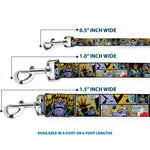 This fashion-forward dog leash is a great way to show off your favorite characters or brands. The durable components and beautiful printing ensure that the colors will continue to pop for years to come! It is made of high-density polyester and steel hardware. The leash is available in 0.5, 1.0 and 1.5 inches wide, and 4 and 6 feet in length. This product is Made in the USA by Buckle-Down Inc. and officially licensed by Marvel Comics.