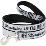 Dog Leash - THE MOUNTAINS ARE CALLING AND I MUST GO/Mountains Outline White/Black