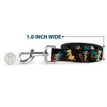 This fashion-forward dog leash is a great way to show off your favorite characters or brands. The durable components and beautiful printing ensure that the colors will continue to pop for years to come! It is made of high-density polyester and steel hardware. The leash is available in 0.5, 1.0 and 1.5 inches wide, and 4 and 6 feet in length. This product is Made in the USA by Buckle-Down Inc. and officially licensed by Disney.