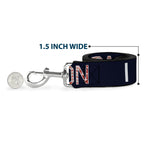 This fashion-forward dog leash is a great way to show off your favorite characters or brands. The durable components and beautiful printing ensure that the colors will continue to pop for years to come! It is made of high-density polyester and steel hardware. The leash is available in 0.5, 1.0 and 1.5 inches wide, and 4 and 6 feet in length. This product is Made in the USA by Buckle-Down Inc. and officially licensed by Buckle-Down.