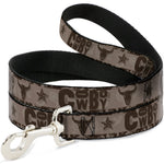 Dog Leash - Western COWBOY Icons Collage Tan/Browns