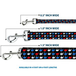 This fashion-forward dog leash is a great way to show off your favorite characters or brands. The durable components and beautiful printing ensure that the colors will continue to pop for years to come! It is made of high-density polyester and steel hardware. The leash is available in 0.5, 1.0 and 1.5 inches wide, and 4 and 6 feet in length. This product is Made in the USA by Buckle-Down Inc. and officially licensed by Buckle-Down.