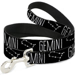 Dog Leash - Zodiac GEMINI/Constellation Black/White