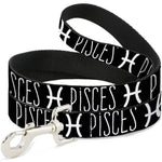 Dog Leash - Zodiac PISCES/Symbol Black/White