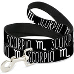 Dog Leash - Zodiac SCORPIO/Symbol Black/White
