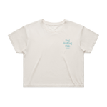The front of the Crop Tee has the graphic printed smaller on the chest, and then bigger on the back!