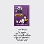 Instructions: Remove wipe from packet and use to remove dirt and odor. It's 100% safe for pets and human too! You can use it for yourself. Make sure to dispose in trash and do not dispose in the toilet (tough wipes can clog the system).