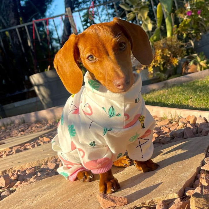Flamingo Jams feature Pink Flamingos, Pineapples & Tropical Leaves on a white background.