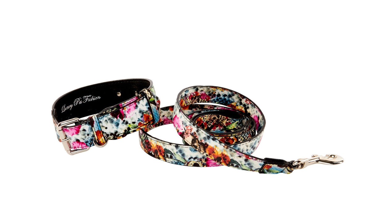 Floral, Scull, Snake Print Italian Leather Classic Collar & Leash Set