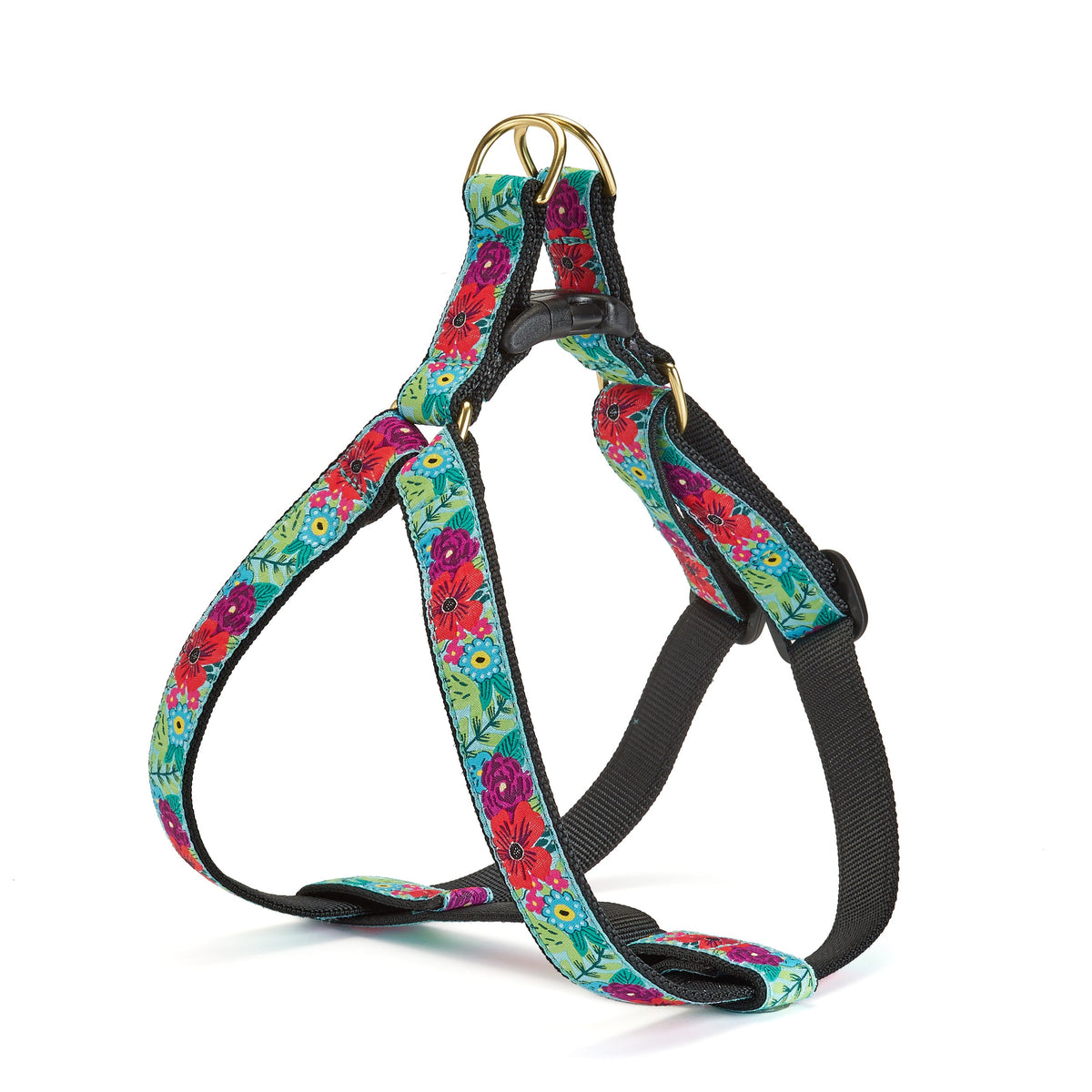 Made in the USA! Our popular step-in style harnesses are adjustable three ways to perfectly suit your dog's shape and size. They are a breeze to get on and off too! Your dog simply steps in and then the quick-release buckle snaps together effortlessly over their shoulders. Our harnesses are made from high-tensile strength nylon webbing with sewn on polyester and nylon ribbons, and are stain and fray resistant. They are designed to last a lifetime! Complete the look with the matching collar and lead.
